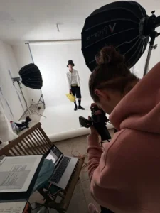 Le shooting se passe bien, malgré des conditions difficiles. Pas de chauffage, à peine dix degrés dans la pièce. En statique, le froid pique vraiment. Impossible de tourner de la vidéo : manque de place, manque de lumière, et un matériel qui ne me permet pas d’éclairer correctement ce type de contenu.